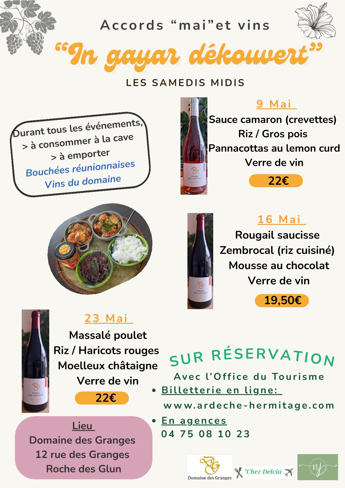 Un voyage "multi sensations" mêlant les vins de la Drôme, les saveurs réunionnaises et ardéchoises en un seul temps pour le plaisir des plus gourmands !