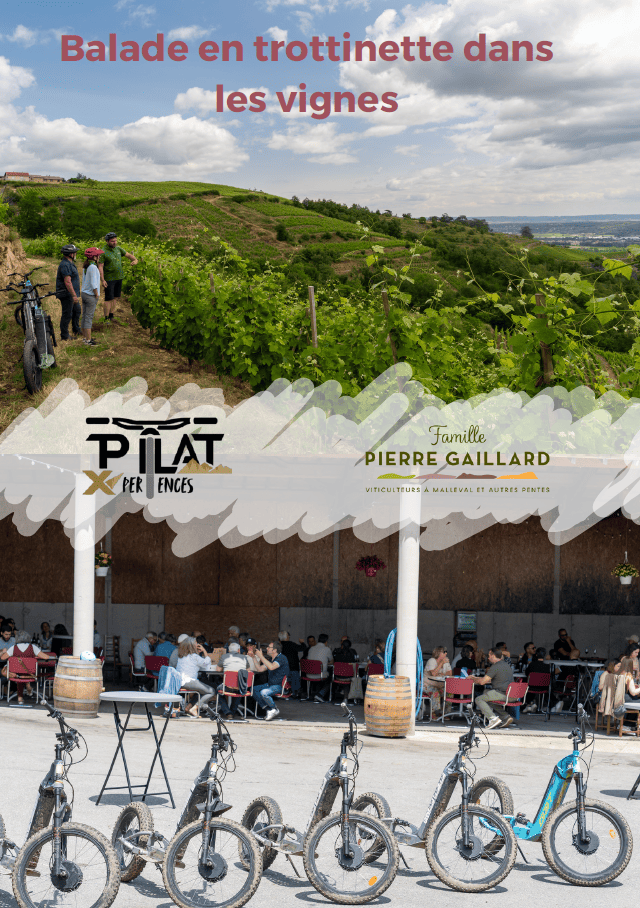 Pilat XPeriences et le domaine Pierre Gaillard s’associent pour un Moment Gourmand à la découverte des parcelles de vignes du domaine en trottinette tout terrain électriques accompagnées d’une dégustation de vins de la vallée du Rhône.