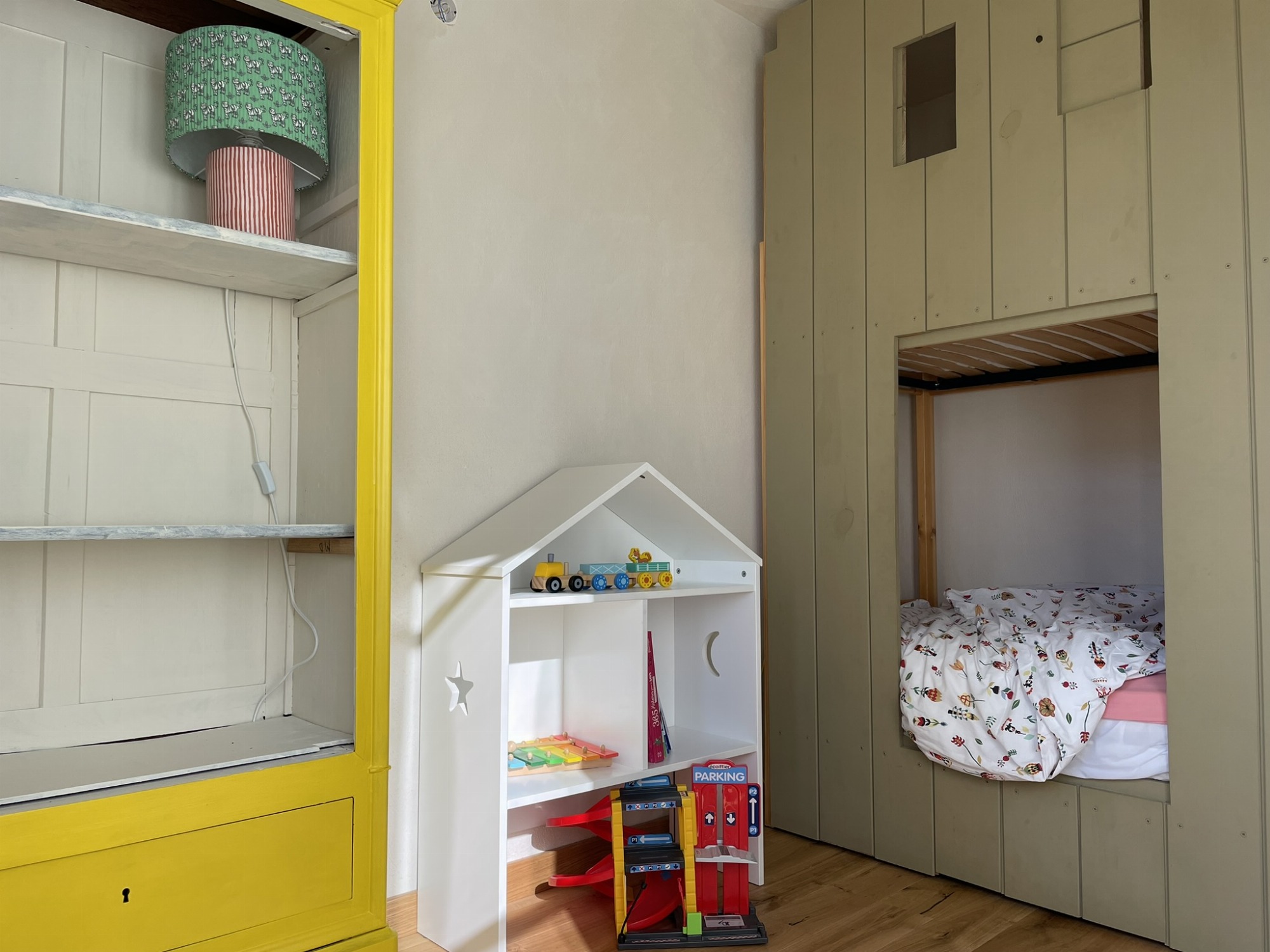 À l'entrée vous disposez d'une pièce de vie spacieuse avec espace salon, cuisine équipée, babyfoot et salle de jeux pour les enfants.