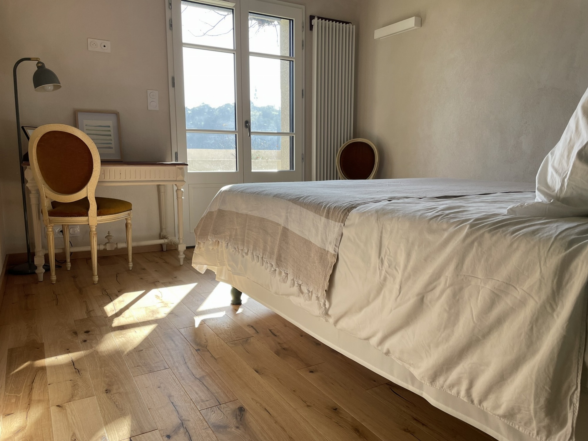 Le gîte est situé au rez-de-chaussée d'une belle maison bourgeoise, il s'ouvre à l'Ouest sur la piscine partagée avec le propriétaire et au Sud sur une terrasse privative abritée par une pergola et équipée d'un barbecue.
