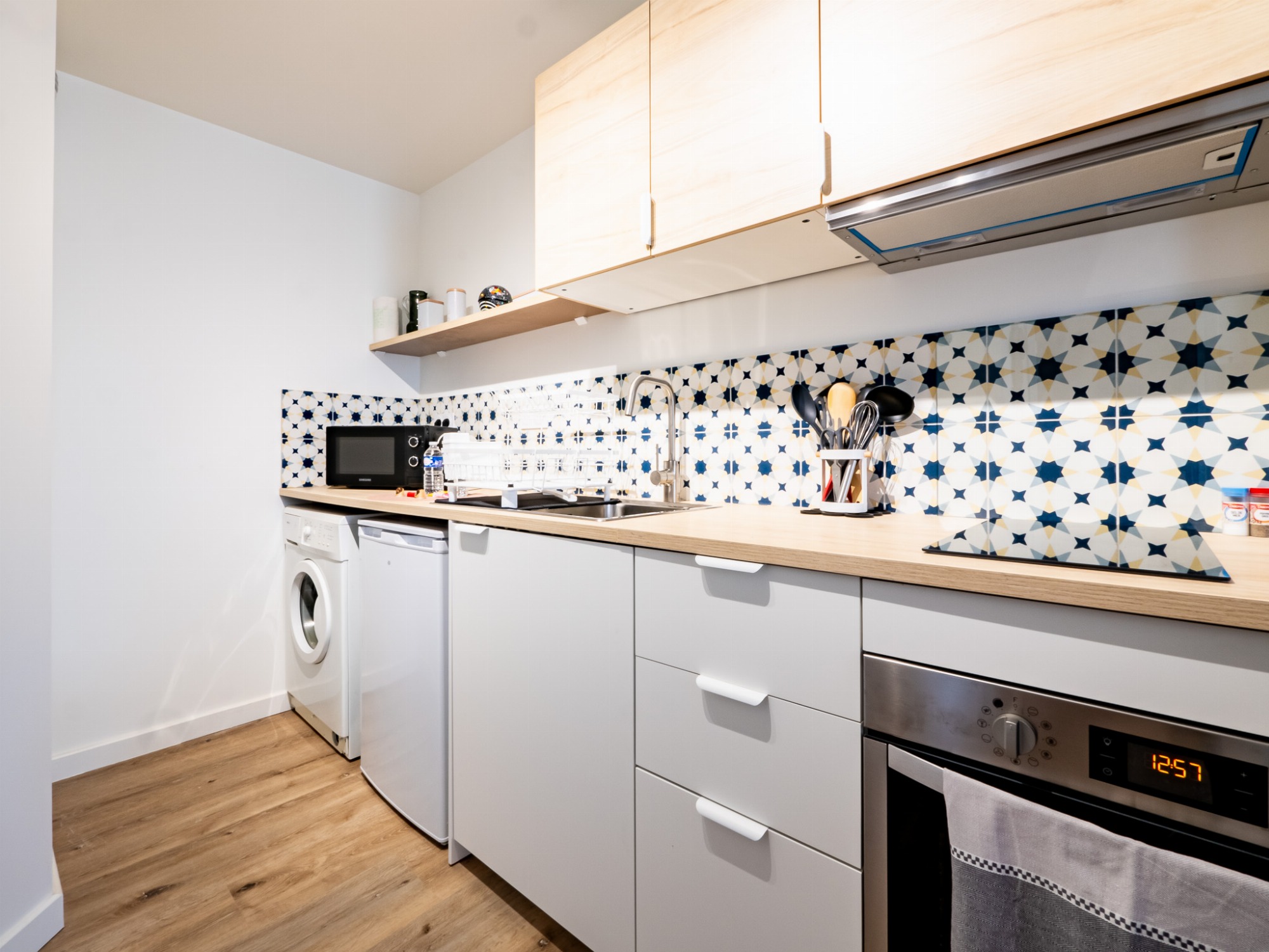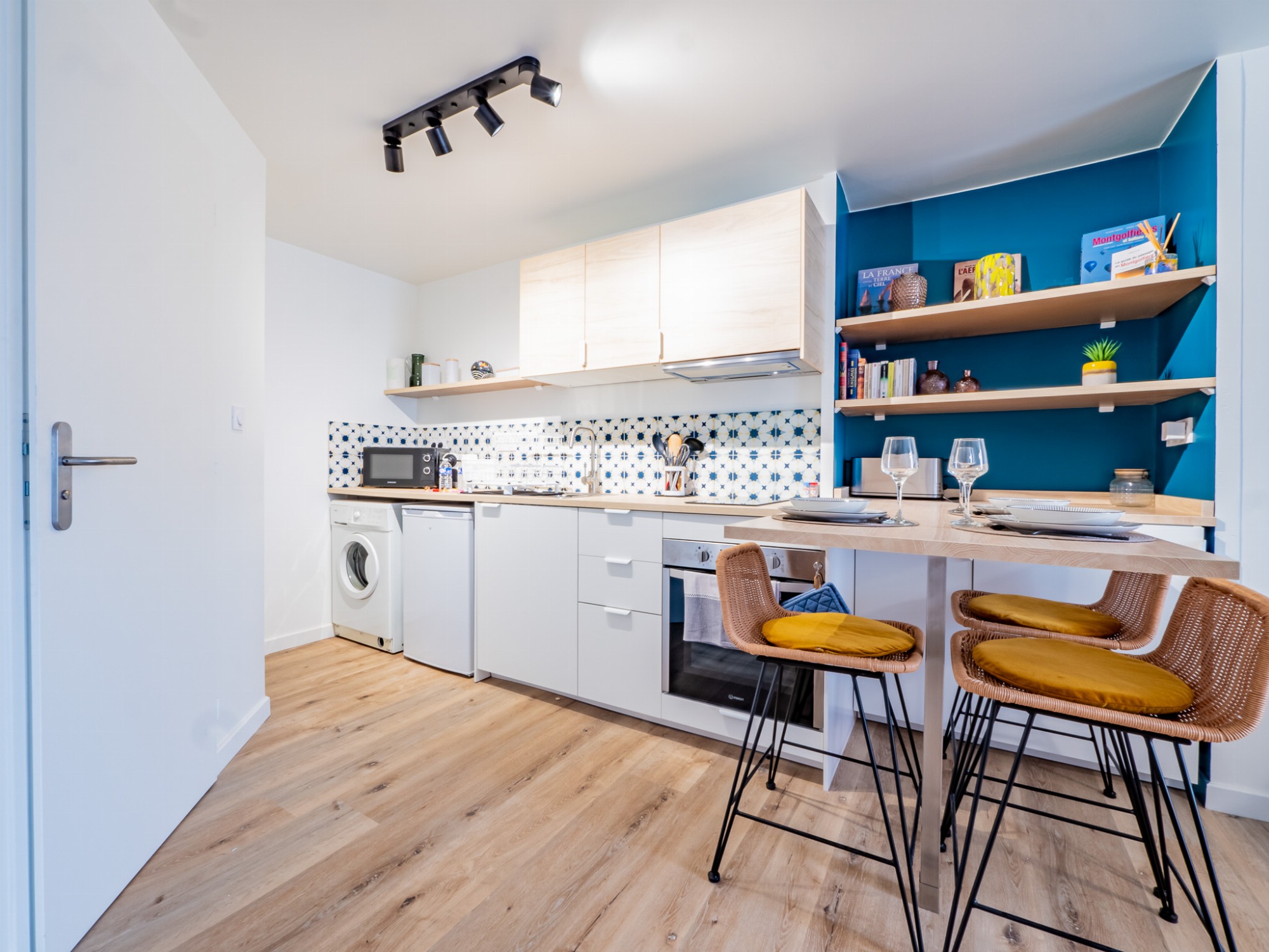 - Cuisine ouverte, fonctionnelle et entièrement équipée (cafetière Krups compatible Nespresso) avec espace repas