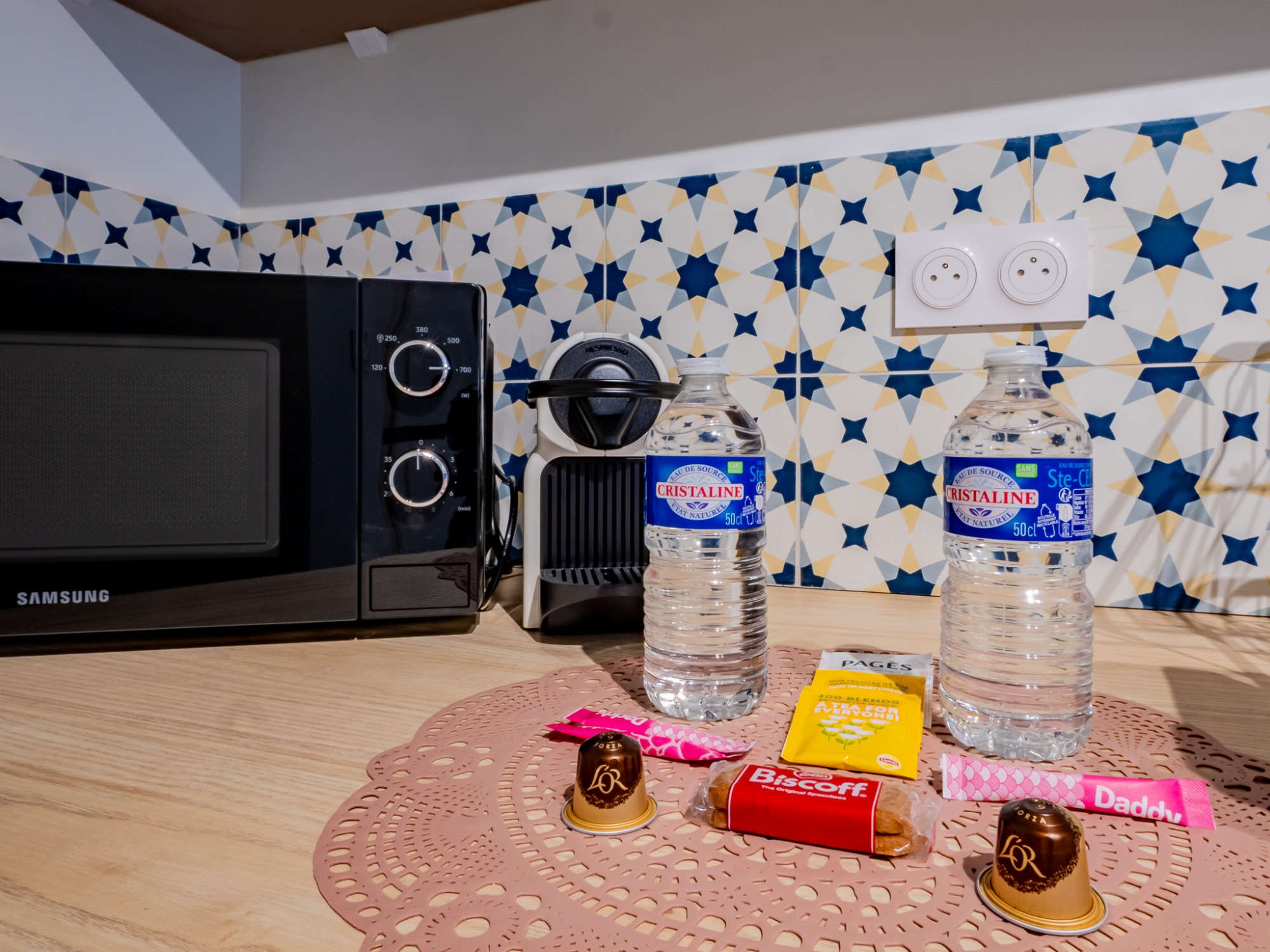 - Articles de bienvenue fournis en quantité limitée (condiments, plateau d'accueil, produits d'hygiène)