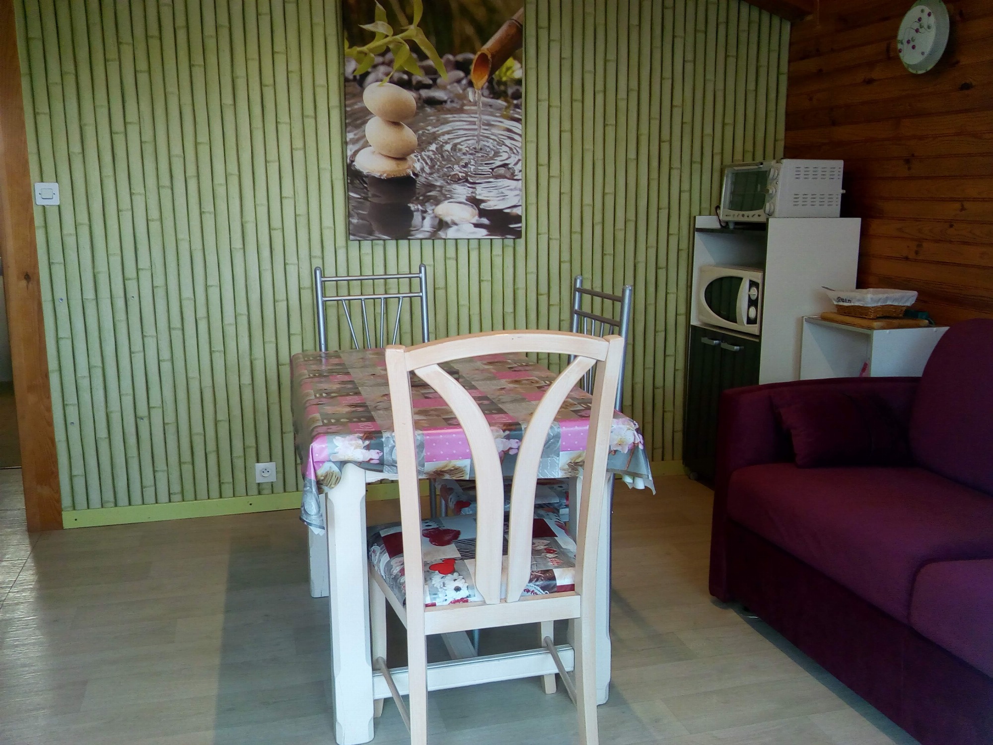 Le gîte est composé d'une chambre, d'une kitchenette ouverte sur un salon, et d'une salle d'eau.